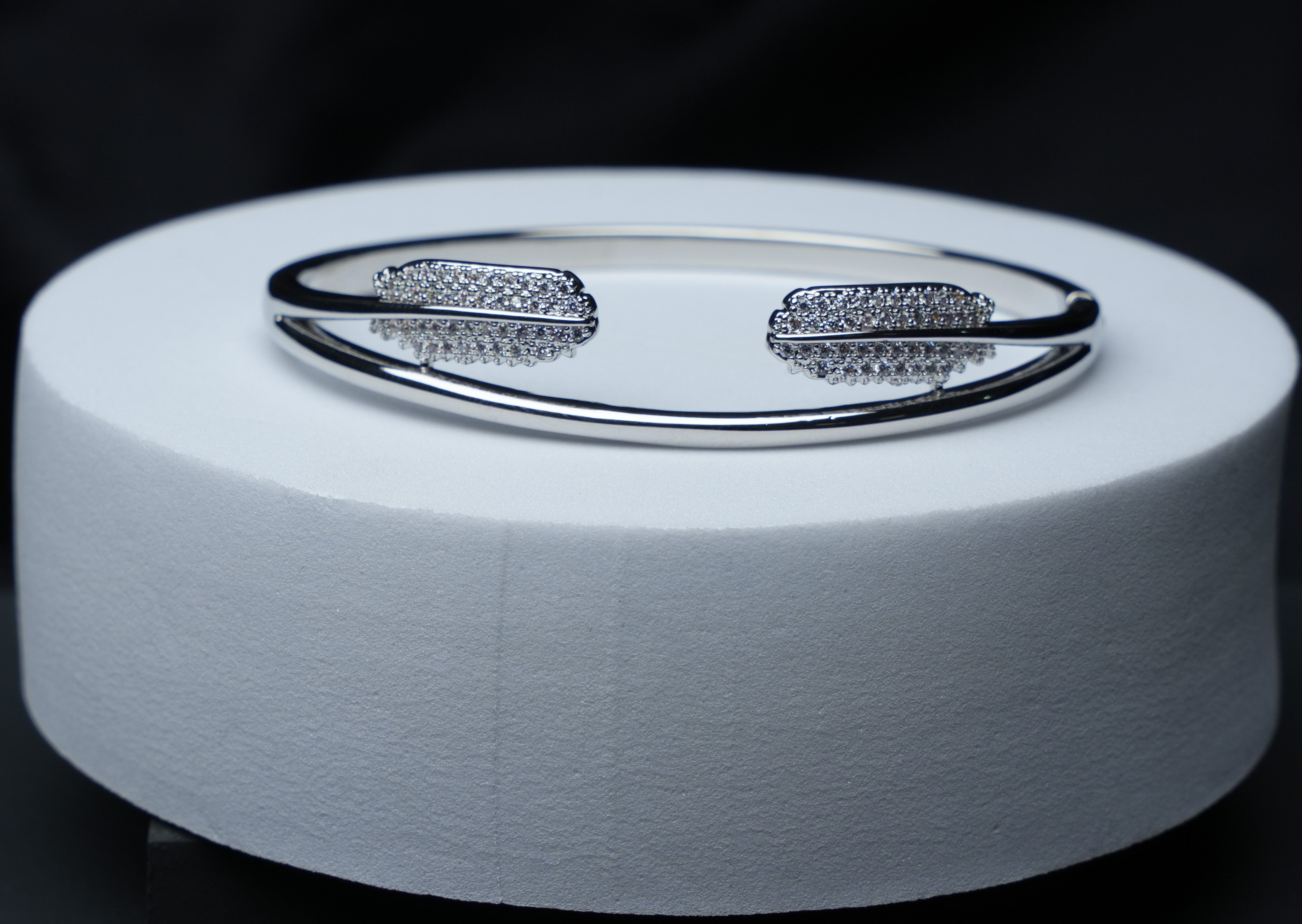 The Eclat Dual-Bar Bracelet redefines modern luxury with its clean silhouette and radiant brilliance. Designed with twin pavé-set bars that sparkle from every angle, it embodies balance, strength, and effortless sophistication. Available in both rose gold and silver finishes, this openable bracelet pairs seamlessly with every look — from chic casuals to elegant evenings.