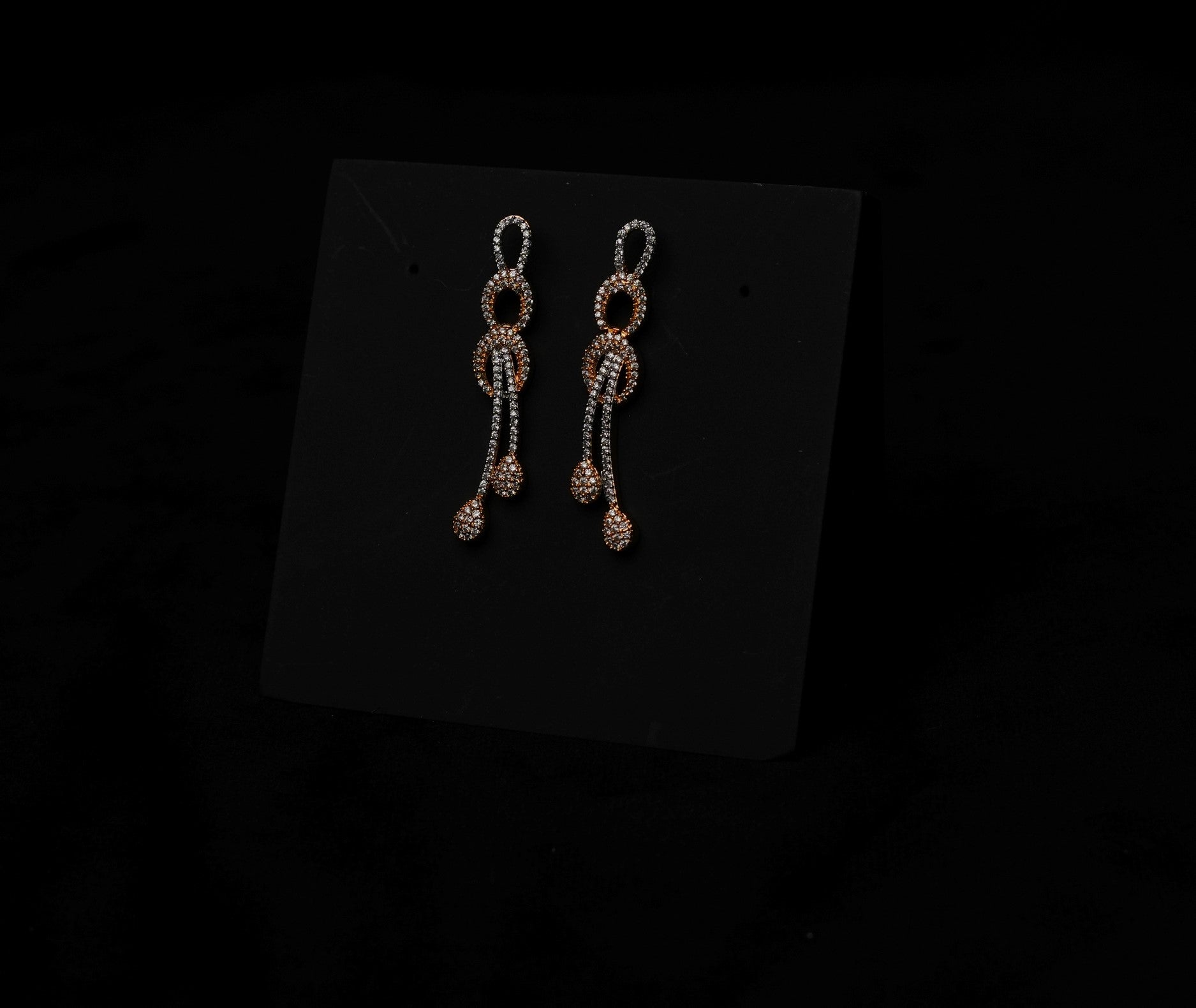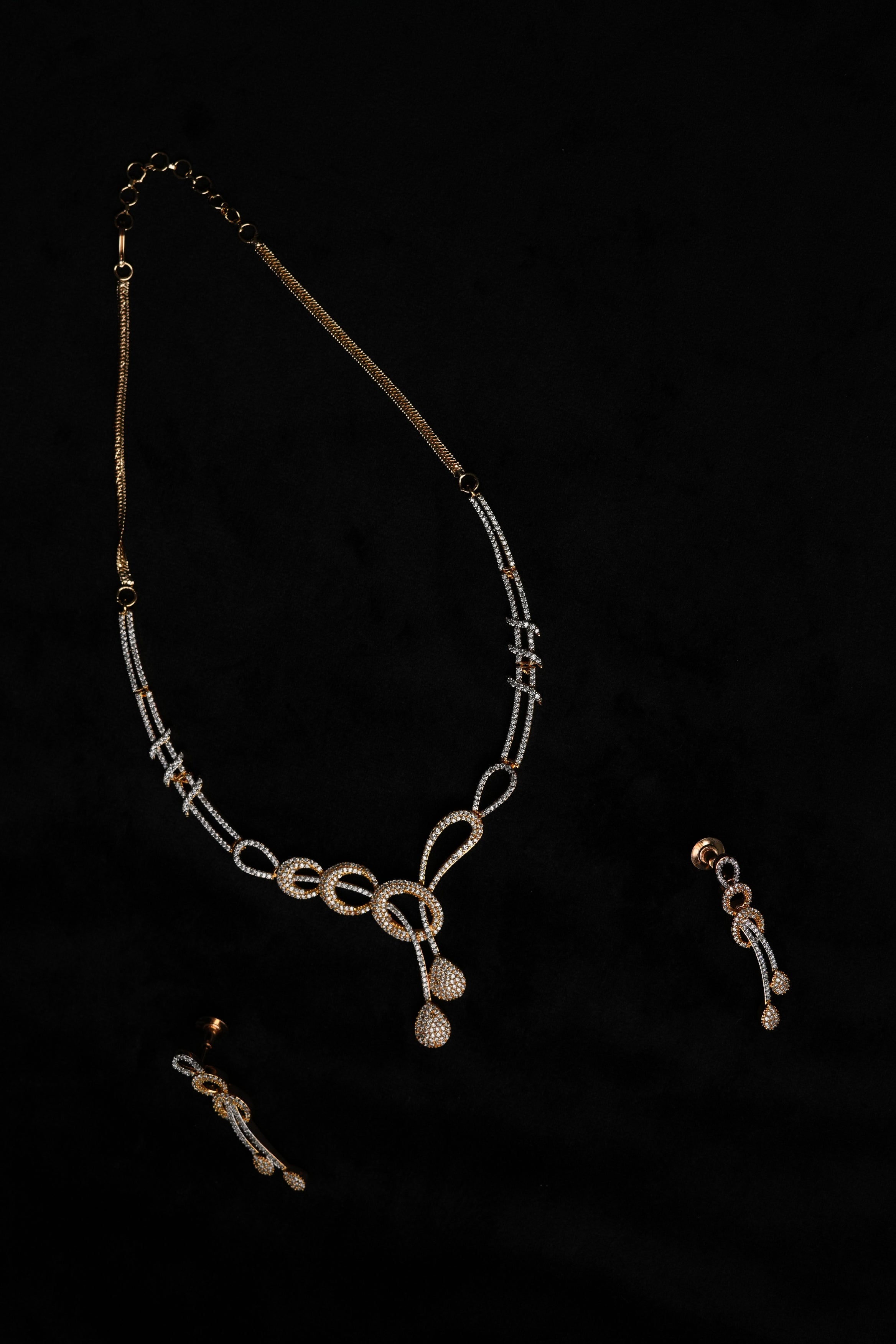 The Golden Knot CZ Necklace Set is a true masterpiece that blends luxury and creativity. Designed with interwoven loops of Cubic Zirconia (CZ) stones in a graceful pattern, it symbolizes timeless connection and elegance. The dual-tone design of gold and silver plating adds depth and sophistication, while the tear-shaped drops enhance its allure. Perfect for festive occasions and evening soirΓ©es, this set makes an unforgettable statement of class.