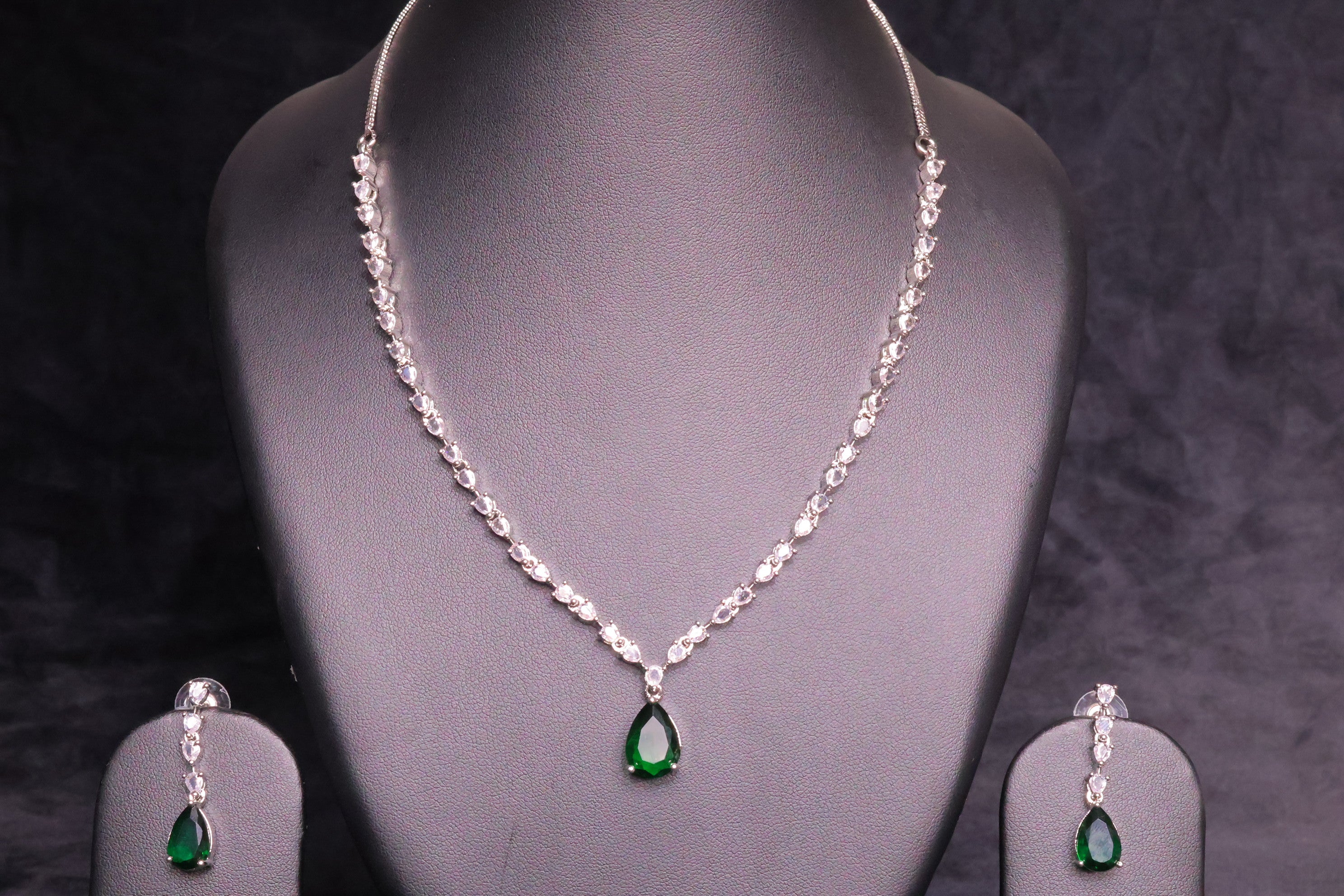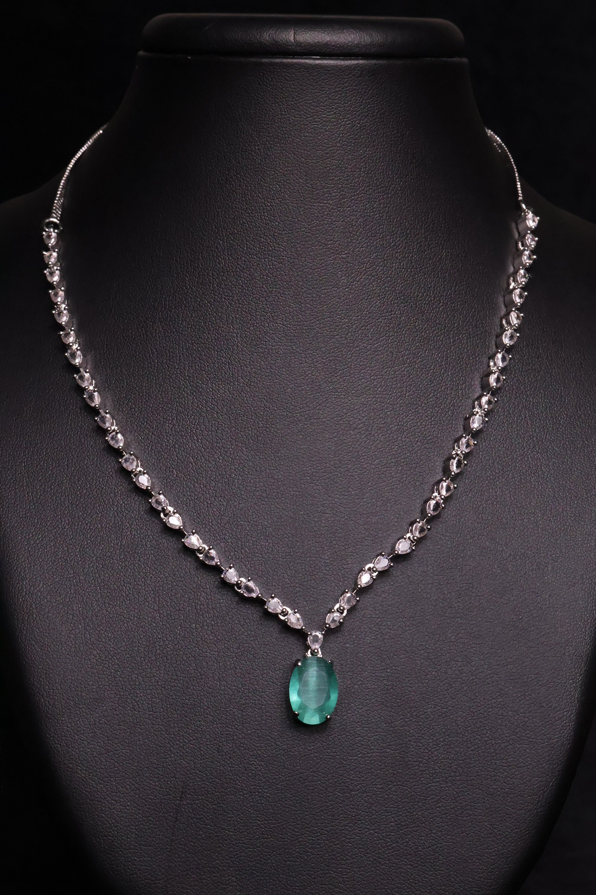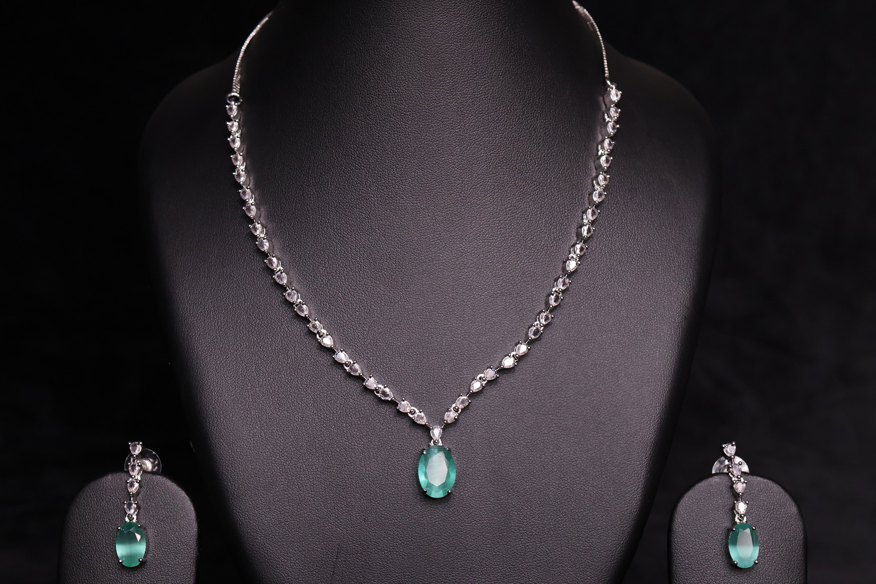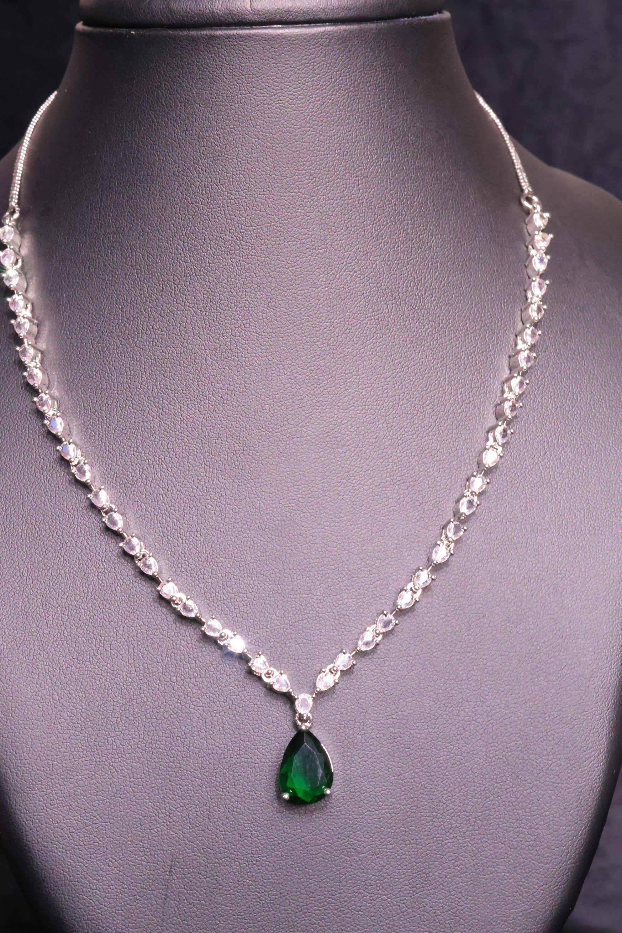 The Seren Glow Necklace Set is the essence of timeless elegance — featuring delicate CZ stones along the chain and a radiant gemstone drop at the center.